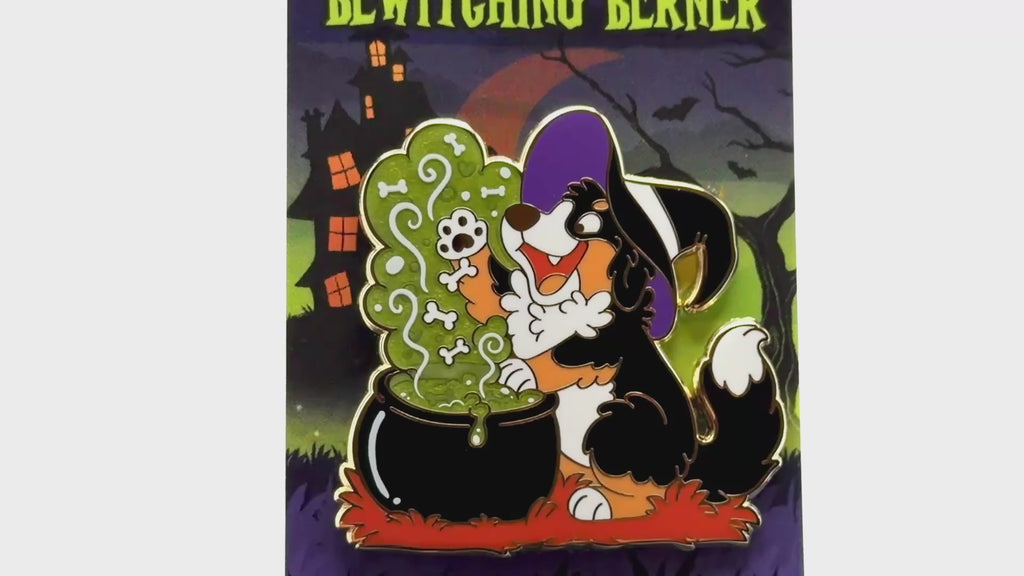 Celebrate spooky season every day with the Bewitching Berner enamel pin. This adorable witchy friend is mixing up a perfectly wicked potion.
