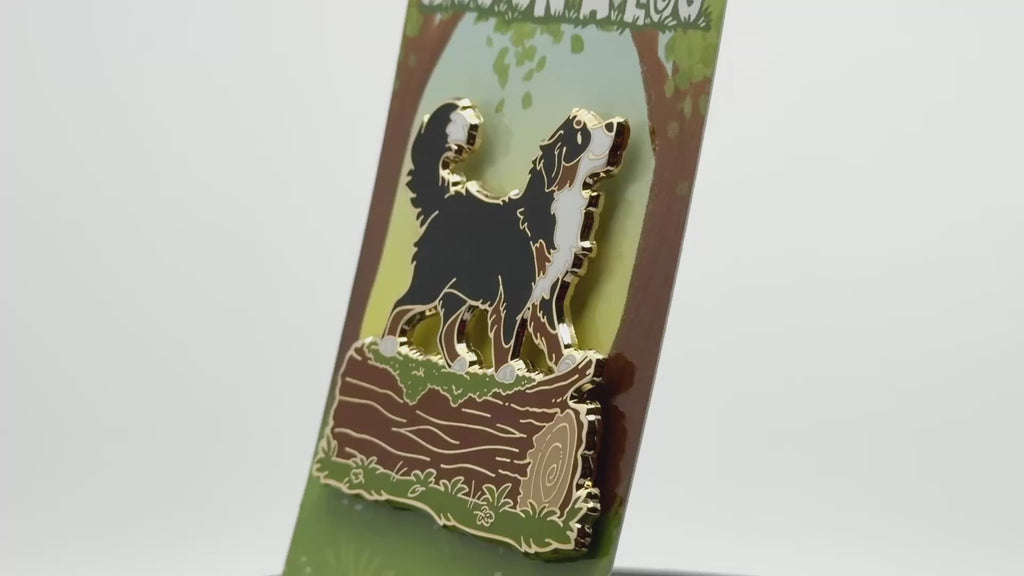 This adorable enamel pin features a cheerful Bernese Mountain Dog perched proudly on a log, ready to sniff out adventure wherever you go. With its sweet expression, fluffy fur details, and a touch of wanderlust, this pin captures the playful spirit of the great outdoors.